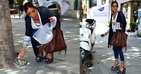 Hayvanlara karşı aşırı duyarlılığıyla bilinen Şebnem Çapa, mama kabını temizleyip kediyi elleriyle besledi. Özellikle sokakta yaşayan hayvanlara karşı insanları duyarlı olmaya çağıran Çapa, "Keşke herkes sokakta gördüğü bir kediyi ya da köpeği beslese" dedi.