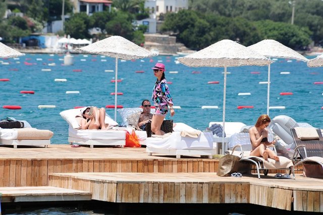 Sosyetenin ünlü hanımları gözde tatil merkezlerinin plajlarında şık plaj elbiseleriyle ön plana çıkıyorlar.