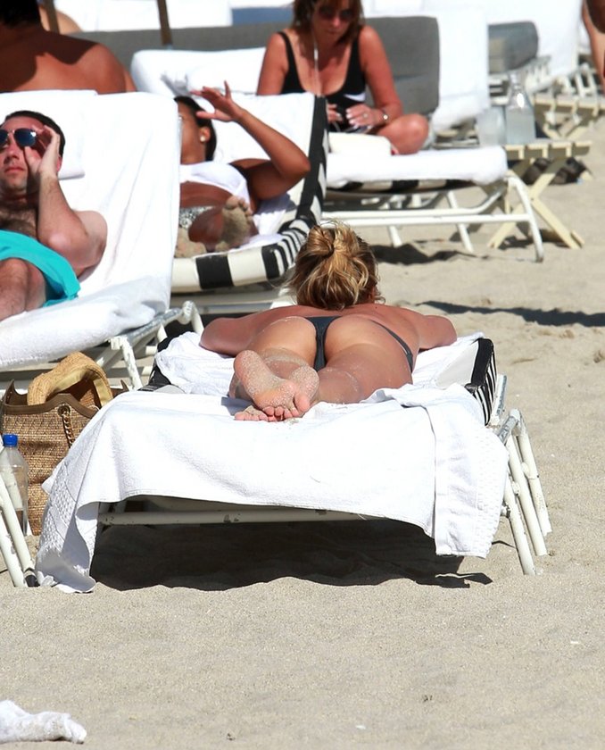Alessia Marcuzzi, Miami sahillerinde sereserpe güneşlenirken objektiflere yansıdı.