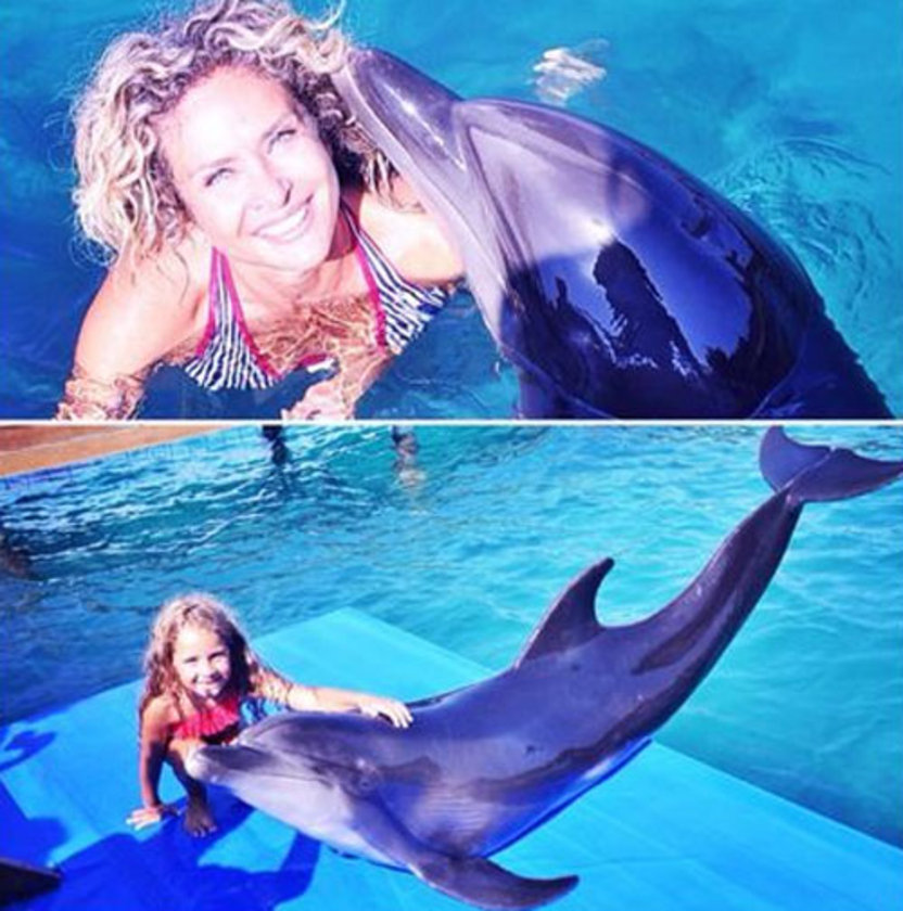Bodrum tatili sırasında çok sevdikleri yunuslarla yüzen Esra Oflaz Güvenkaya ve kızı Almila Su, mutluluklarını sosyal medyadan paylaştı.