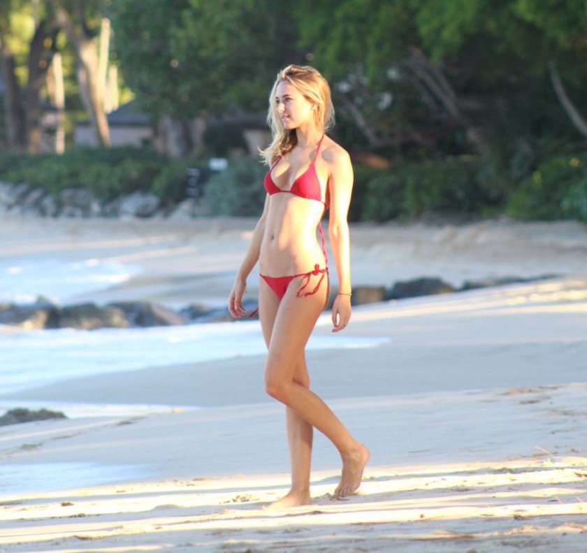 Oyunculuktan bikini tasarımcılığına geçen Kimberley Garner, kırmızı bikinisiyle göz doldurdu.