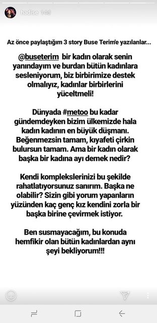 BUSE TERİM BAHÇEKAPILI'YA HADİSE'DEN DESTEK MESAJI