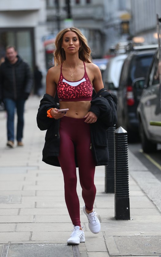 Ünlü manken Ferne McCann, Londra sokaklarında kırmızı spor kıyafetleriyle koşu yaptı.