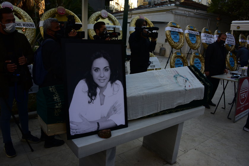 LAL KORÇAN ANNESİ BAHAR KORÇAN'IN CENAZE TÖRENİNDE AYAKTA DURMAKTA ZORLUK ÇEKTİ.