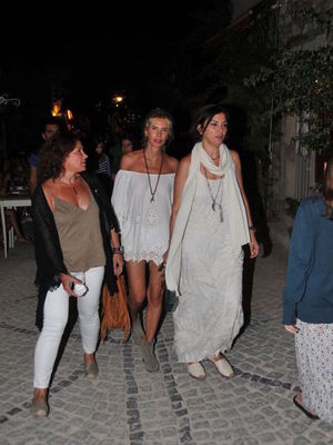 Çeşme müdavimlerinden Elif Dürüst, Alaçatı'da akşam dolaşırken görüntülendi.